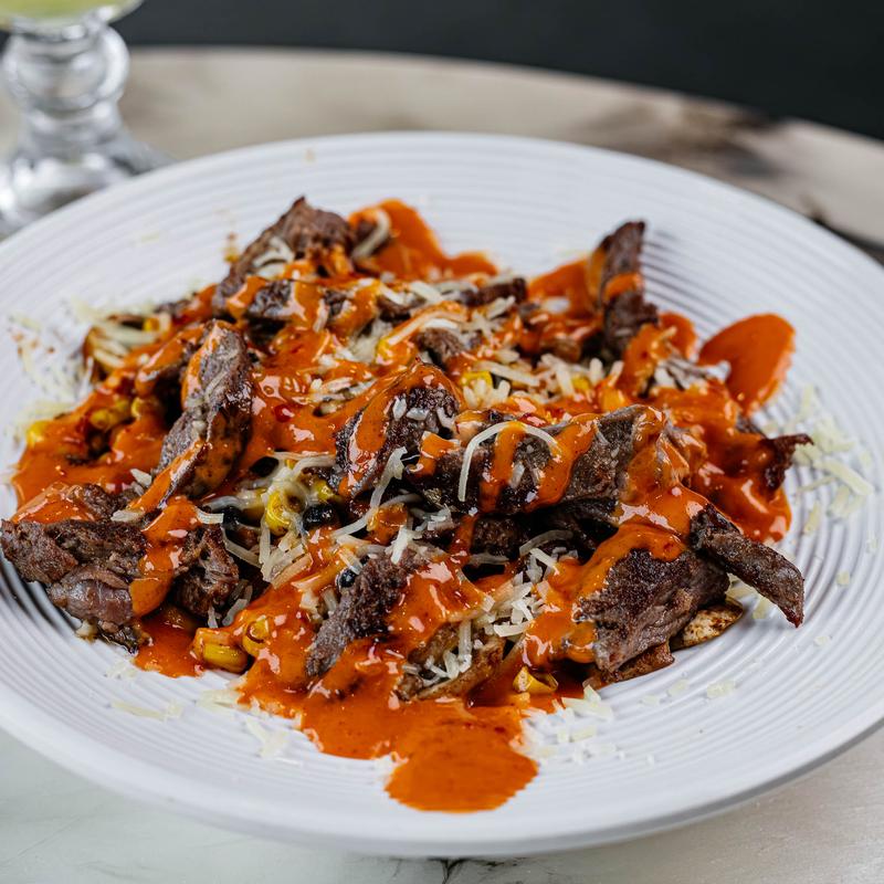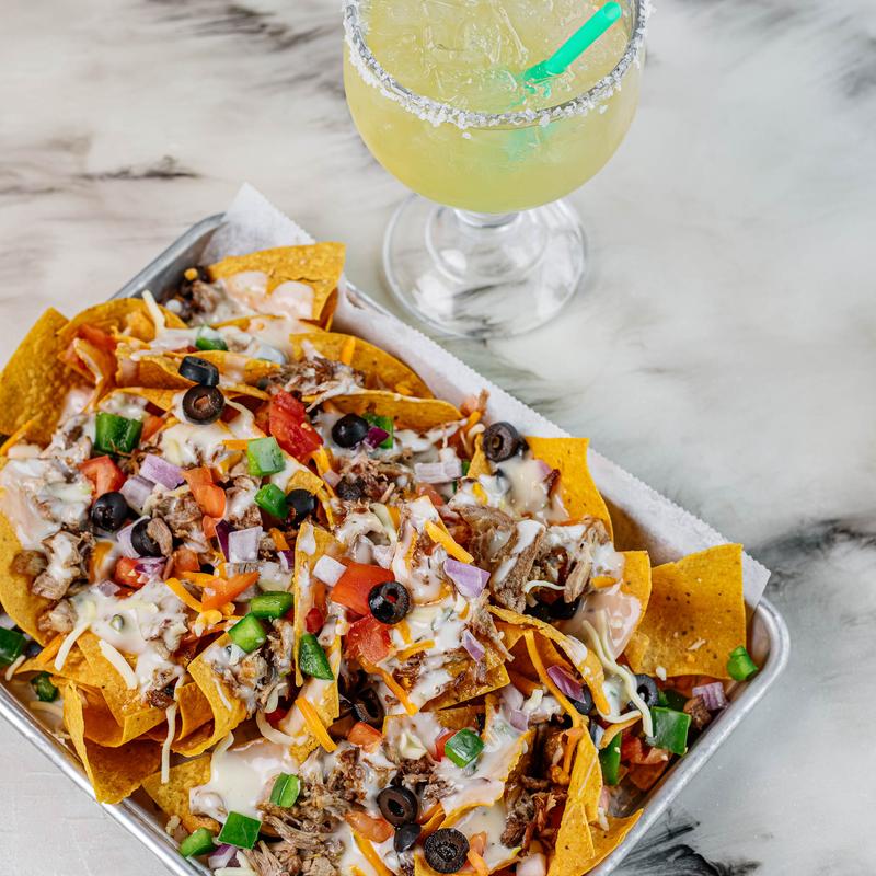 Tortilla chips or tator tots with poblano queso, shredded cheddar, black olives, tomatoes, green peppers, onion, salsa, and sour cream. Choice of beef, pulled pork, steak, or chicken • Add guacamole +2.00