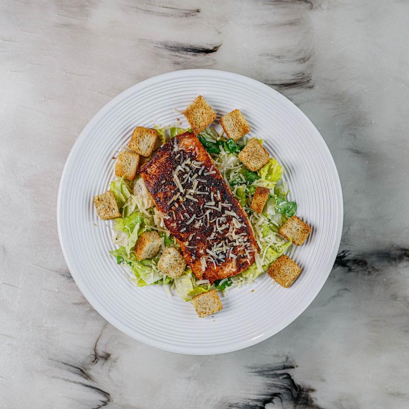 Choice of blackened salmon or shrimp on a bed of fresh romaine lettuce tossed in our house-made wasabi Caesar dressing with parmesan cheese.